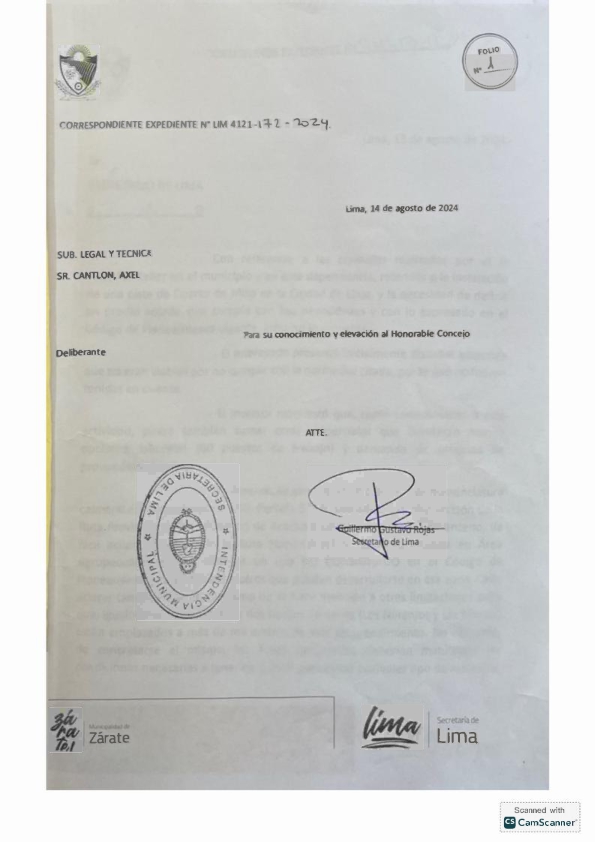 Esto queda expuesto desde el primer folio, en el que con el sello institucional colocado al revés el Secretario de Lima Guillermo Rojas envía una nota a un funcionario inexistente. Rojas se la Remite a la Subsecretaría Legal y Técnica… sin tener en cuenta que la Municipalidad de la que él forma parte no cuenta con una Subsecretaría Legal y Técnica. La nula preparación que exhibe Rojas es alarmante.