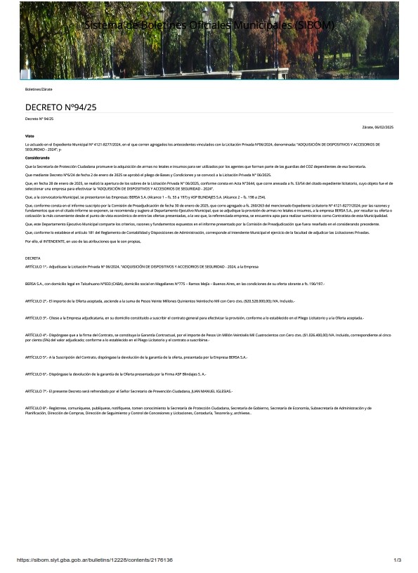 Boletín Oficial Irene Guehenneuf Juan Manuel Iglesias Marcelo Matzkin Secretaría de Prevención Ciudadana Secretaría de Protección Ciudadana Zárate