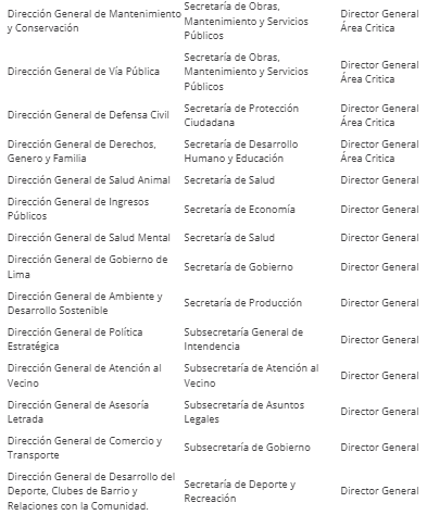 Aún más extraño es lo que sucede con las Direcciones Generales. Solo cuatro fueron clasificadas como áreas críticas: