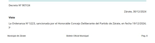 Hoy, casi un año y medio después seguimos en la misma emergencia porque la Escribanía aprobó la Ordenanza 5223, que prorroga ‘desde el 1° de enero de 2025 y hasta el 31 de diciembre de 2025 la vigencia de la Ordenanza N° 5064’