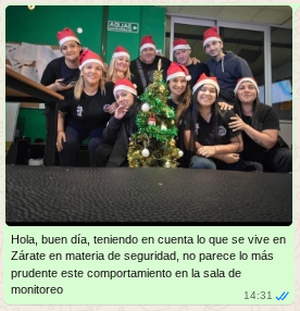 La foto navideña en el Centro de Monitoreo es una metáfora perfecta de la gestión de Iglesias, que tiene menos conducción de equipo que Jorge Sampaoli, y, por extensión, de toda esta gestión municipal. Mientras los zarateños sufren la inseguridad, mientras los comercios cierran temprano por los robos, mientras los vecinos tienen miedo de salir a la calle, los empleados del COZ se sacan selfies con gorros de Papá Noel y festejan cumpleaños.