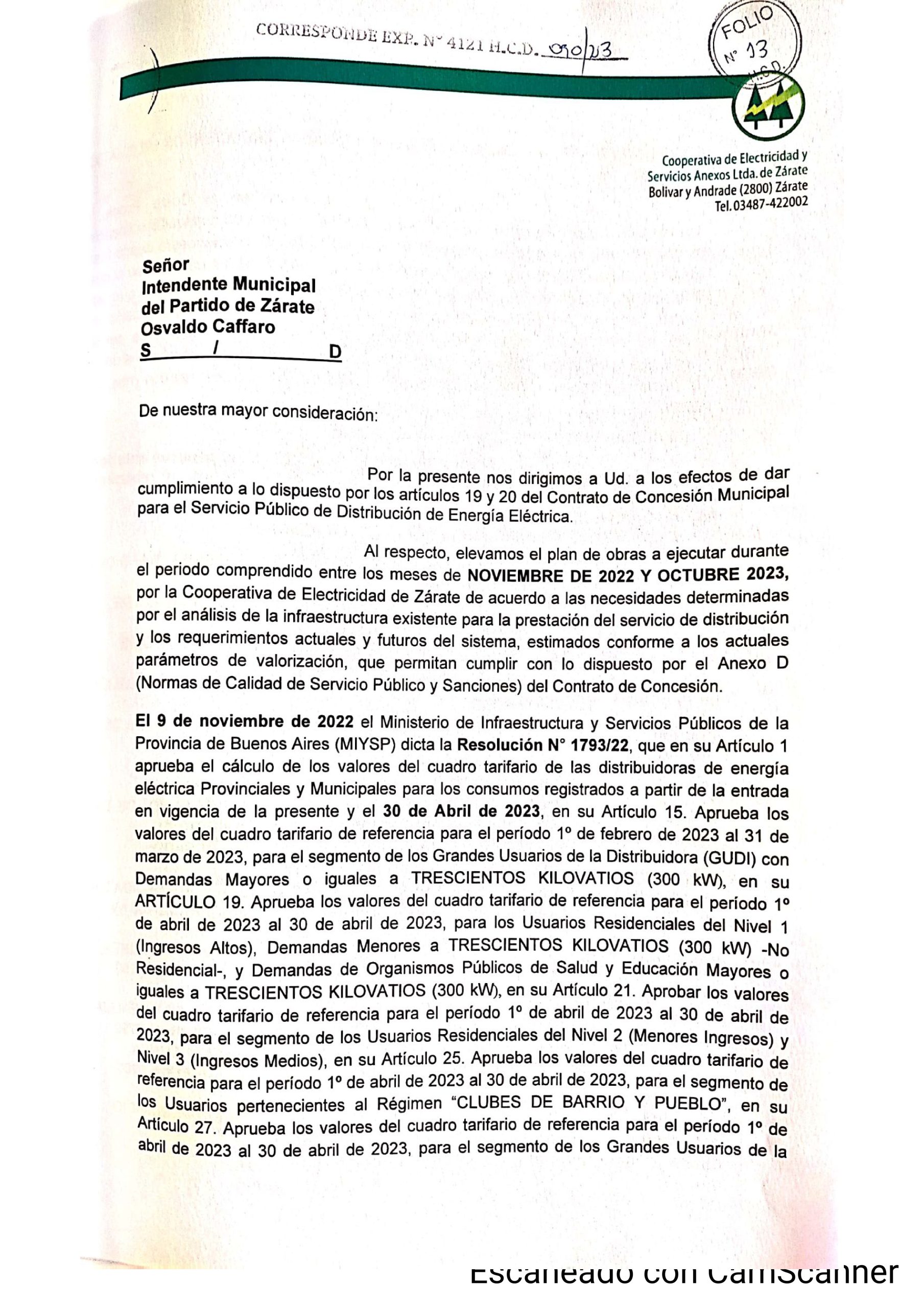 Pero ni el Departamento Deliberativo ni el Ejecutivo hacen nada respecto al servicio iniciático que debe cubrir la Cooperativa Eléctrica de Zárate: la distribución del servicio eléctrico en el Partido de Zárate. Esa pavada. Ese detallito menor por el cual se le otorgó la concesión en primer lugar.