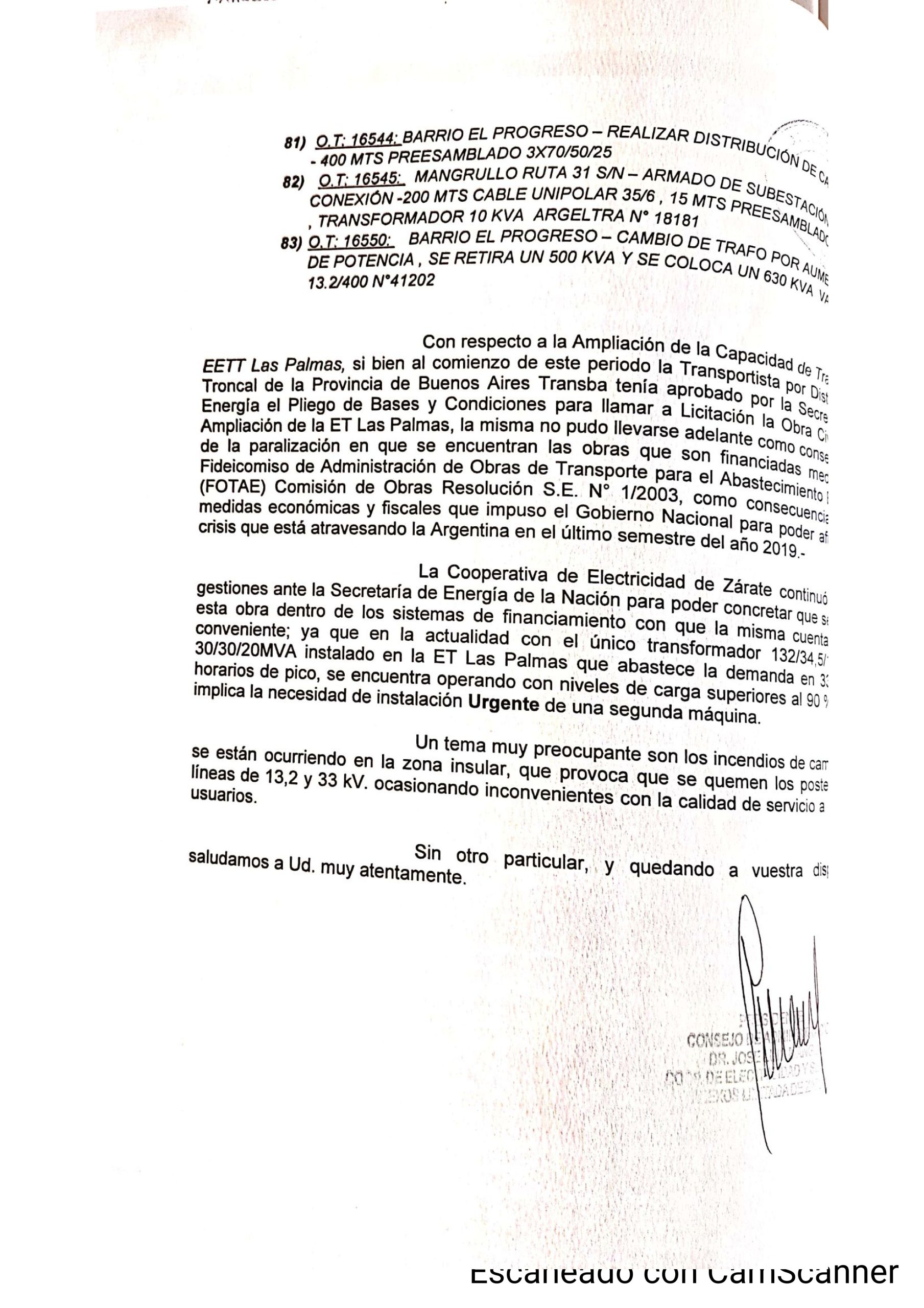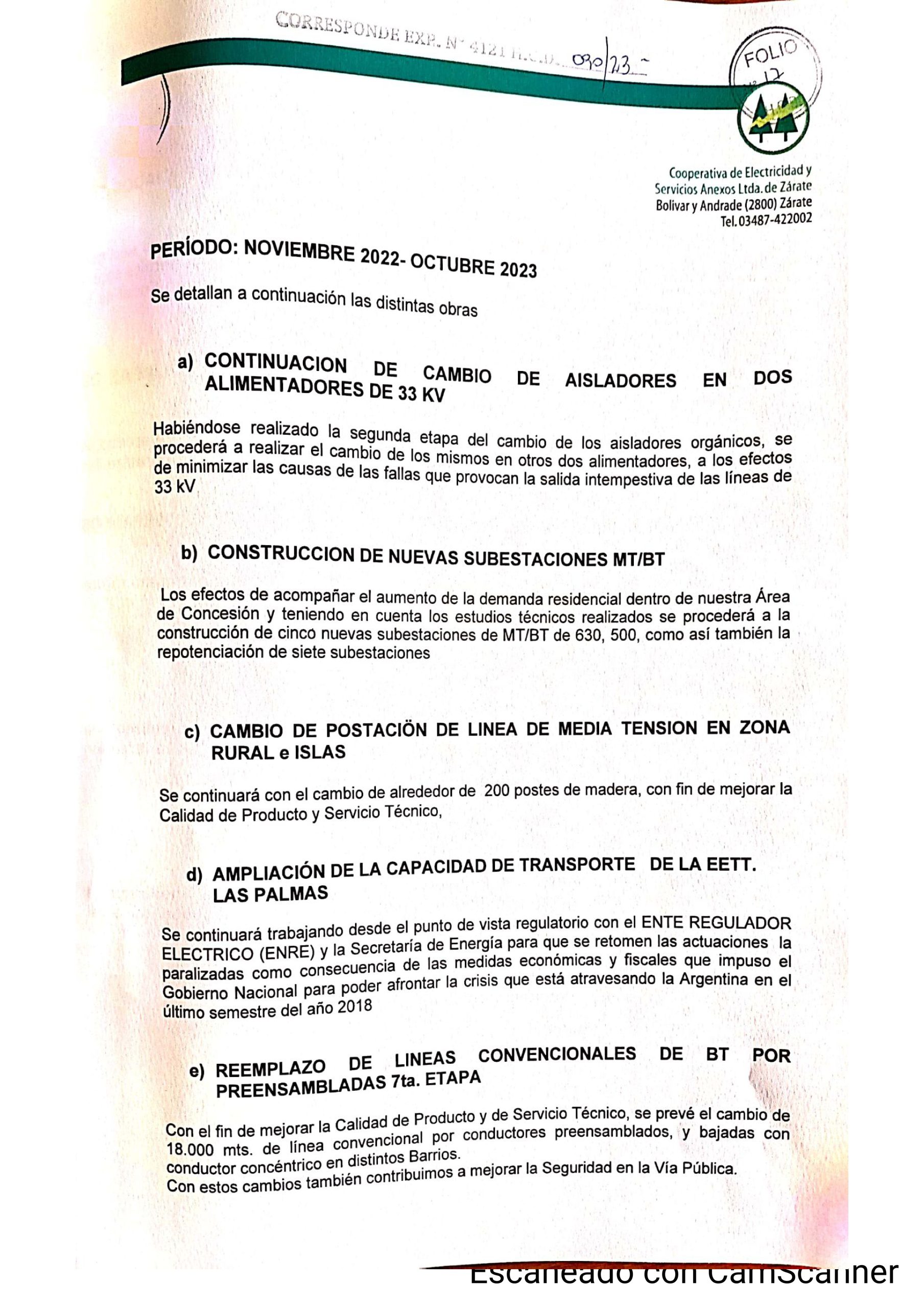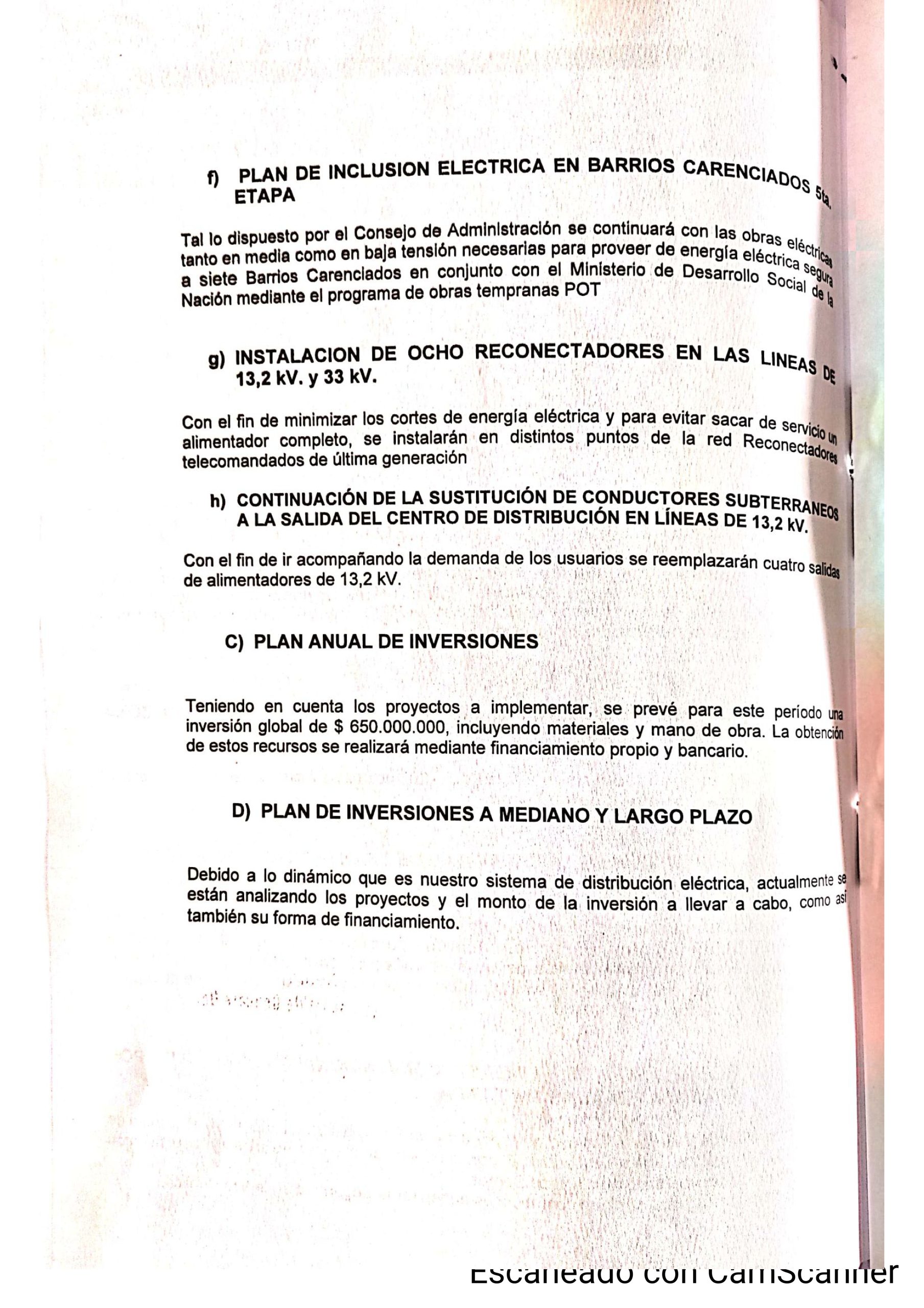 Pero antes de adentrarnos en este ‘Plan de Obras’ (las comillas son necesarias, créanme), corresponde mencionar que afirma Mangini al comienzo de su presentación al Intendente, que la realiza ‘a los efectos de dar cumplimiento a lo dispuesto por los artículos 19 y 20 del Contrato de Concesión Municipal para el Servicio Público de Distribución de Energía Eléctrica.’