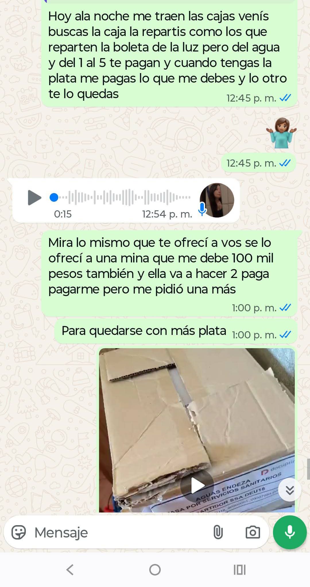 El último ejemplo surgió el pasado fin de semana cuando, en medio de una disputa por el pago de un préstamo personal extra-financiero (esos que te hacen firmar tres veces y te cobran intereses que harían sonrojar a un usurero del siglo XIX), la financista le reclama el pago a la financiada, y como el tiempo pasa y no lo recibe, le sugiere una ‘alternativa laboral’ para saldar su deuda.